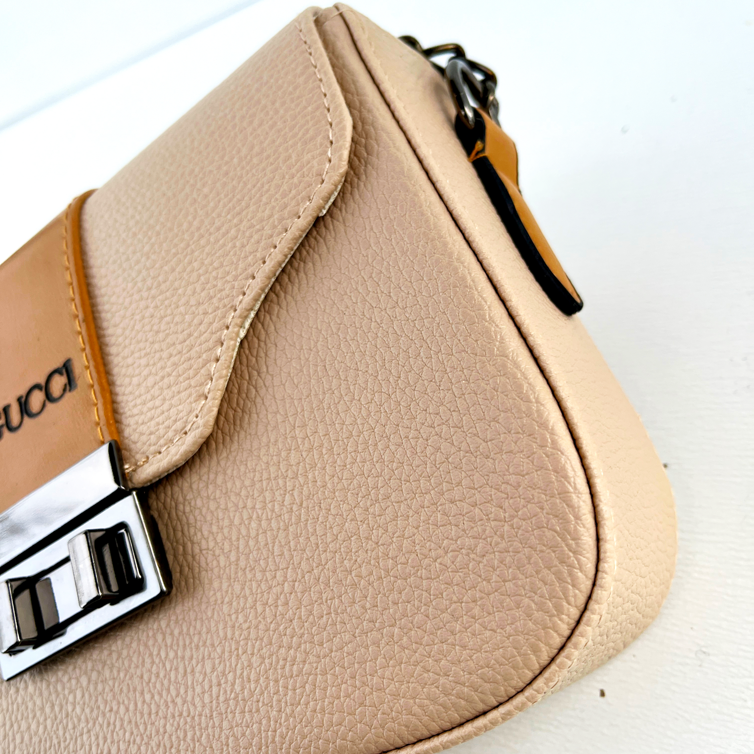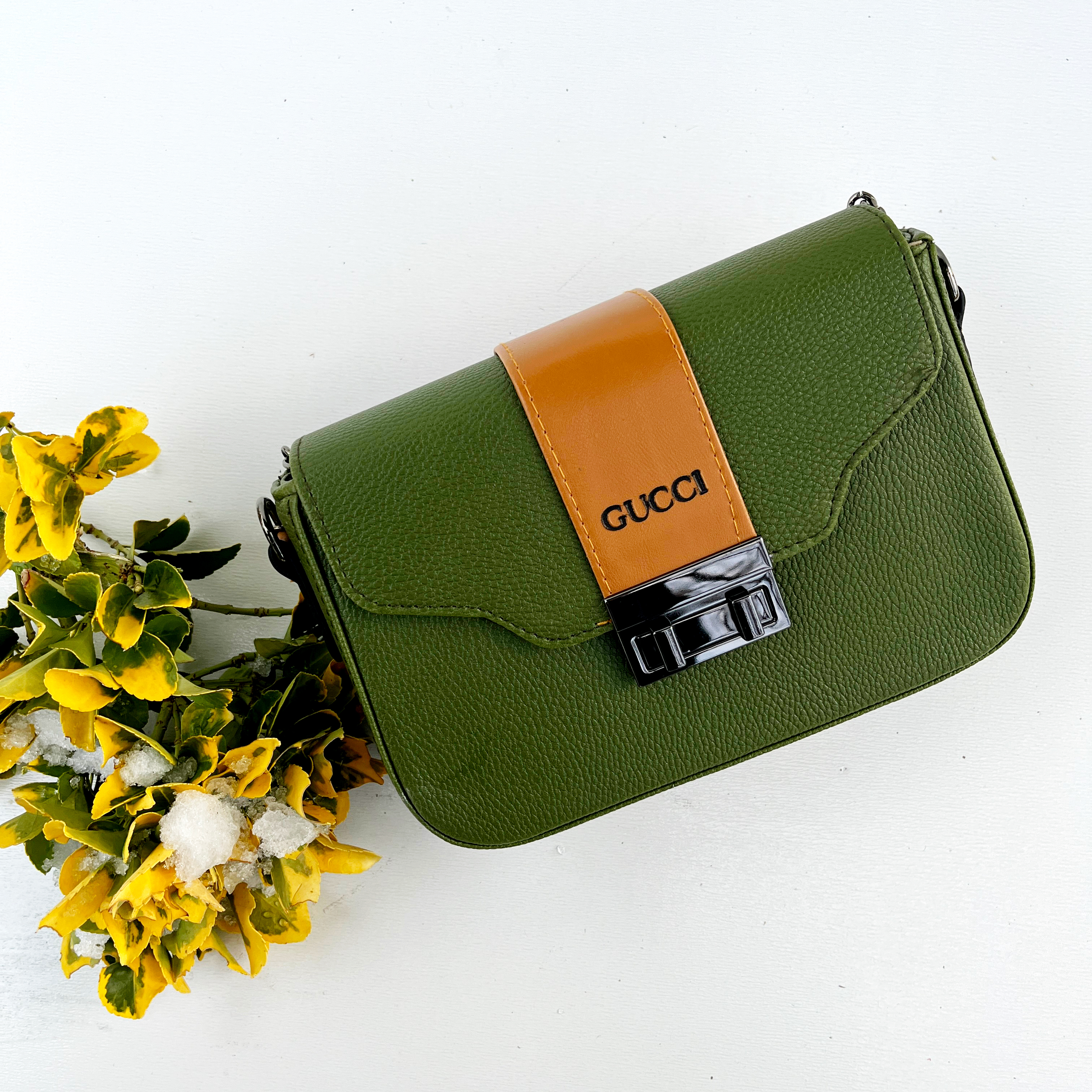 این کار گوچی خفن مون بند دوشی نیمه بند و نیمه زنجیری داره و مدلش رو خیلی خاص کرده و قفل رادیویی رنگ ثابت هم استفاده شده